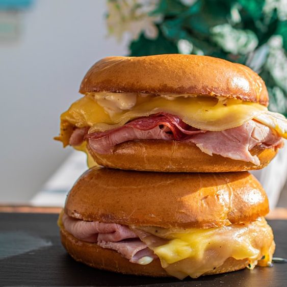 Our made‑to‑order breakfast sandwiches are served on fresh bagels and packed with your choice of ham, sausage, or crispy bacon, layered with fluffy eggs and melted cheese for a warm, satisfying start to your day.